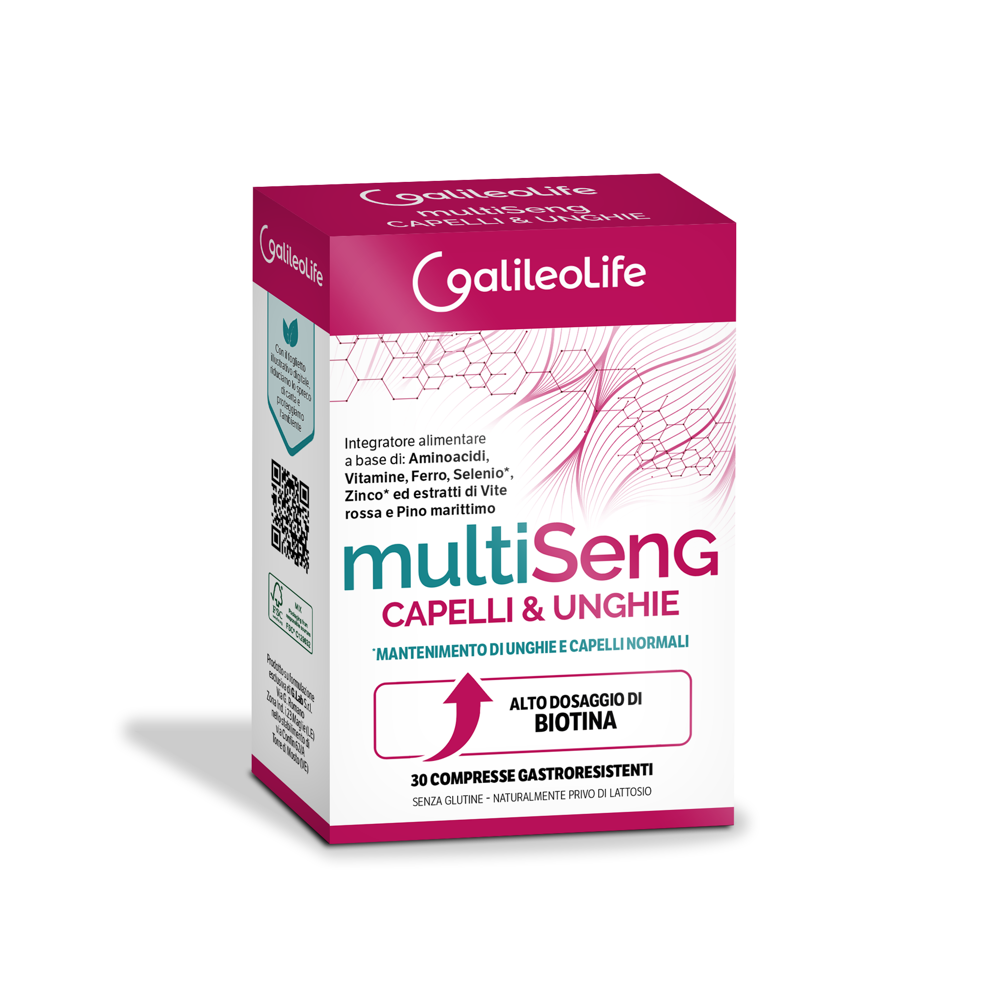 I nostri farmacisti ti consigliano di abbinare con MULTISENG CAPELLI E UNGHIE 30 CPR in caso di:MULTISENG Capelli e Unghie è un integratore alimentare a base di L-cistina, L-lisina e L-prolina con estratti titolati di Vite rossa e Pino marittimo, ad azione antiossidante, e Oligoelementi (Ferro, Rame, Selenio e Zinco). Selenio e Zinco contribuiscono al mantenimento di unghie normali ed, insieme alla Biotina, al mantenimento di capelli normali. Vitamine B1, B5, B6, B12 e Acido folico contribuiscono al normale metabolismo energetico. Il Rame contribuisce alla normale pigmentazione dei capelli. Inoltre Rame, Selenio, Zinco e Vitamina C contribuiscono alla protezione delle cellule dallo stress ossidativo.