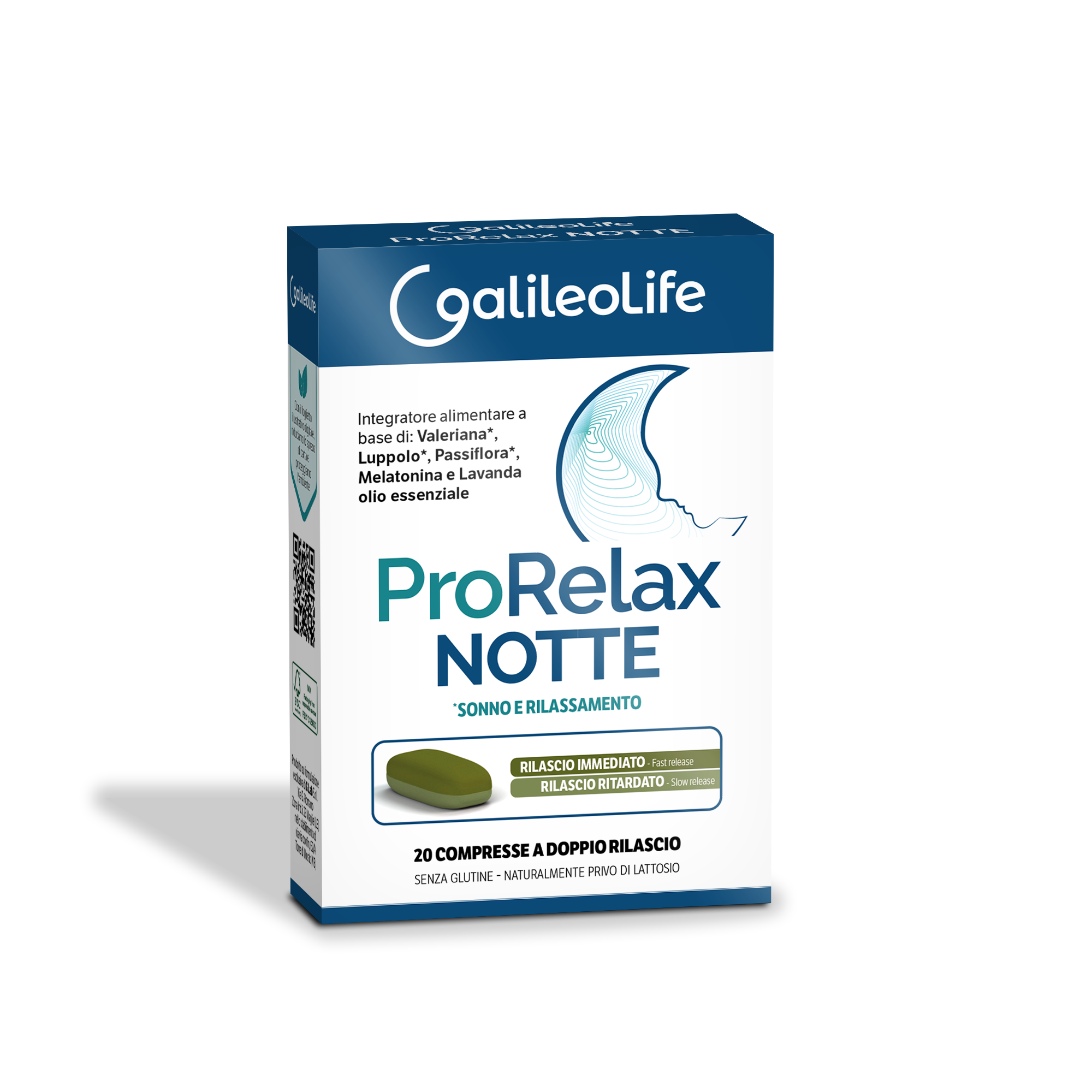 I nostri farmacisti ti consigliano di abbinare con PRORELAX NOTTE 20 CPR in caso di:PRORELAX NOTTE è un integratore alimentare in compresse a doppio strato fast release/slow release, innovativa tecnologia utile a modulare l’assorbimento dei principi vegetali. Lo strato fast release contiene Valeriana, Griffonia, Vitamina B3 e B6 che vengono rilasciati immediatamente dopo l’assunzione della compressa. Lo strato slow release contiene Valeriana, Luppolo, Passiflora e Melatonina e vengono rilasciati durante la notte. Valeriana, Griffonia, Luppolo e Passiflora risultano utili per favorire il rilassamento e il sonno.
